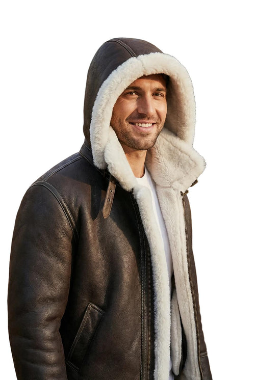 Classic Sheepskin B-3 Bomber Jacket Dark Brown White -