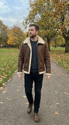 I’ll be honest, I thought the photos online were probably too good to be true. But the moment I put it on, I could feel the difference. Real shearling, proper leather, and seriously warm. My wife keeps saying it looks expensive. Great buy