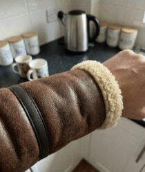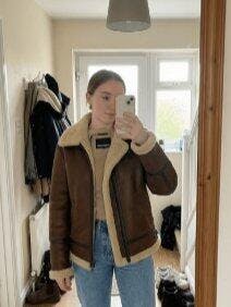 I’ve tried a few shearling jackets in shops and they always felt stiff or cheap. This one feels like the real deal